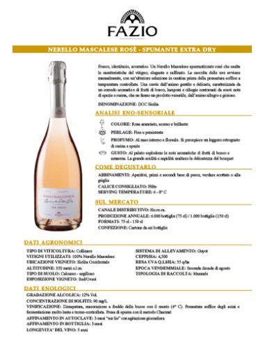 Raffinato spumante rosé siciliano, perfetto per chi cerca un vino elegante, fresco e versatile. Prodotto da uve 100% Nerello Mascalese coltivate in Sicilia, questo spumante D.O.C. si distingue per il suo colore rosa tenue, il perlage fine e persistente, e i profumi delicati di frutti rossi, melograno e fiori freschi.